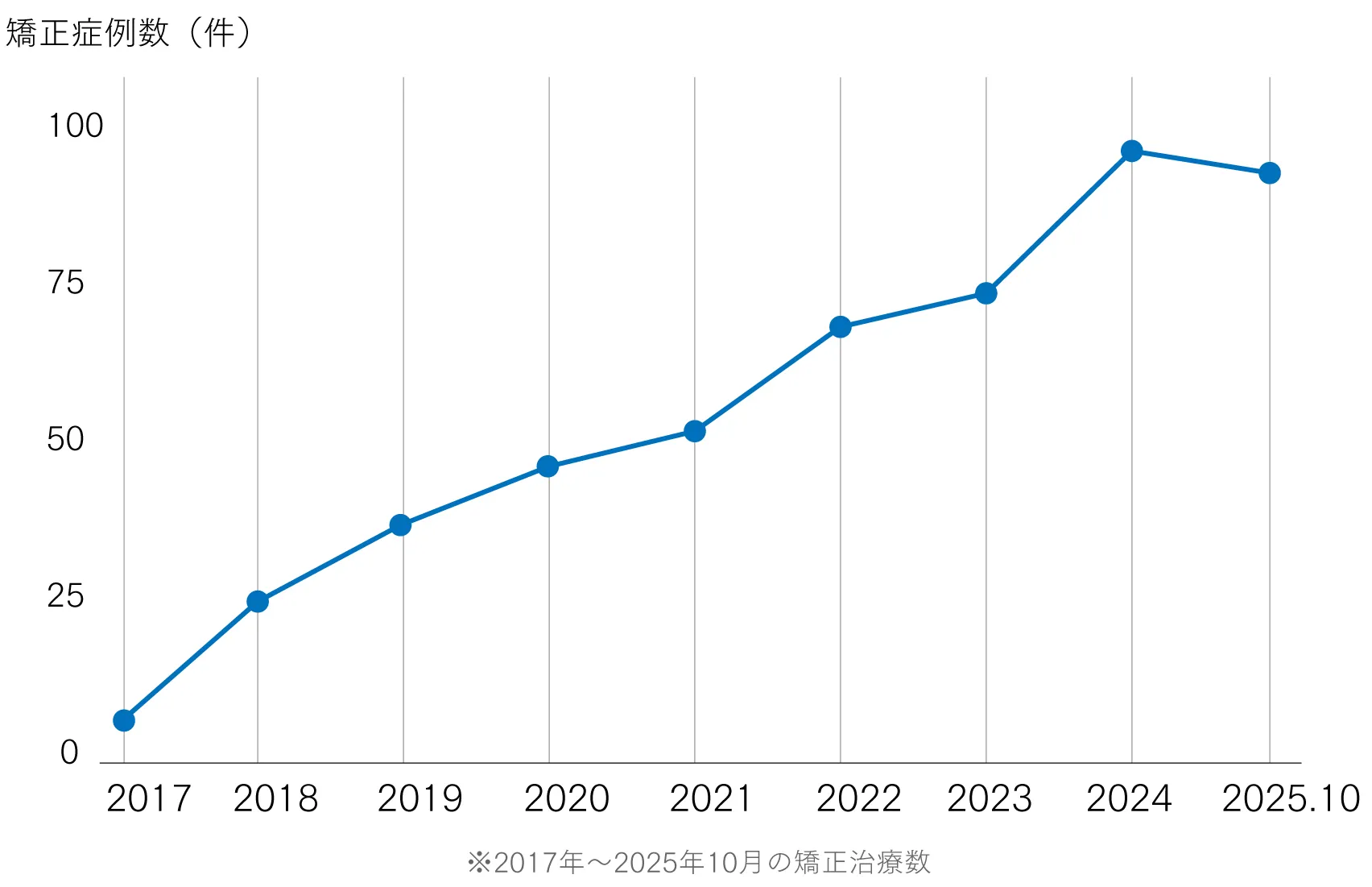 当院は2017年から2025年10月まで487件の小児矯正治療実績を有しております。